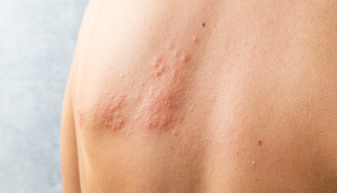 Como se mencionó previamente, el herpes zóster representa una reactivación del virus en el huésped. Tras la primera infección, este se replica dentro de los ganglios nerviosos, cuando la inmunidad no puede controlarlo, desde donde viajan a través del nervio hasta la piel, generando el herpes zóster. Es por este motivo que las lesiones en la piel forman un trayecto desde la columna hacia adelante siguiendo el nervio, asemejándose a una serpiente, razón por la que surge su nombre popular “culebrilla”.