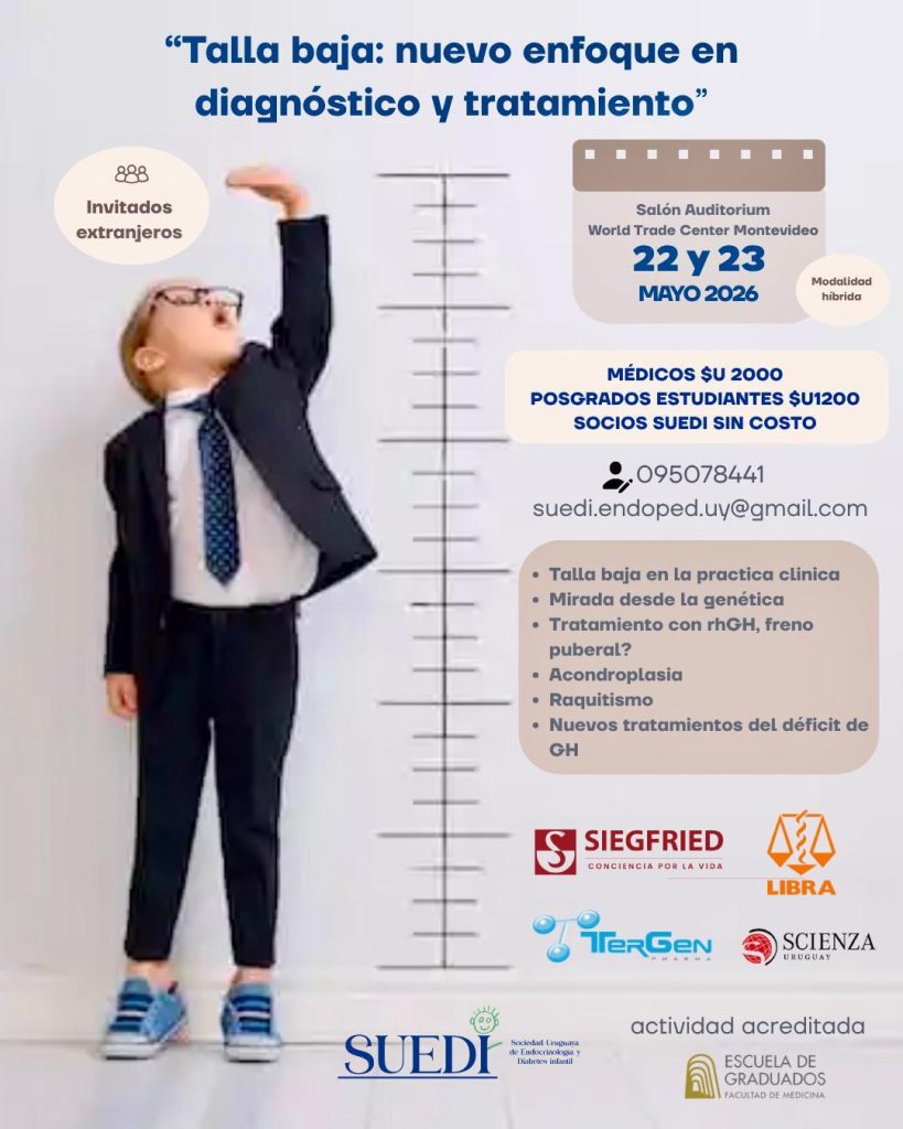 La Sociedad Uruguaya de Endocrinología y Diabetes Infantil (Suedi) y la Escuela de Graduados de la Facultad de Medicina invitan a participar del simposio denominado “Talla baja: nuevo enfoque en diagnóstico y tratamiento”.